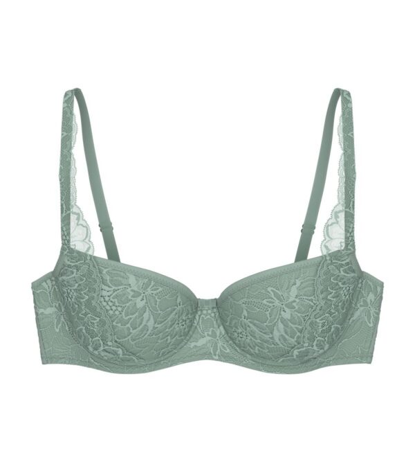 Tugikaartega ja õhukese polstriga rinnahoidja. Korvid kaetud pitsiga, küljed ja tagaosa elastse kahekordse tülliga. Haak-kinnitus kolme reguleerimisastmega.