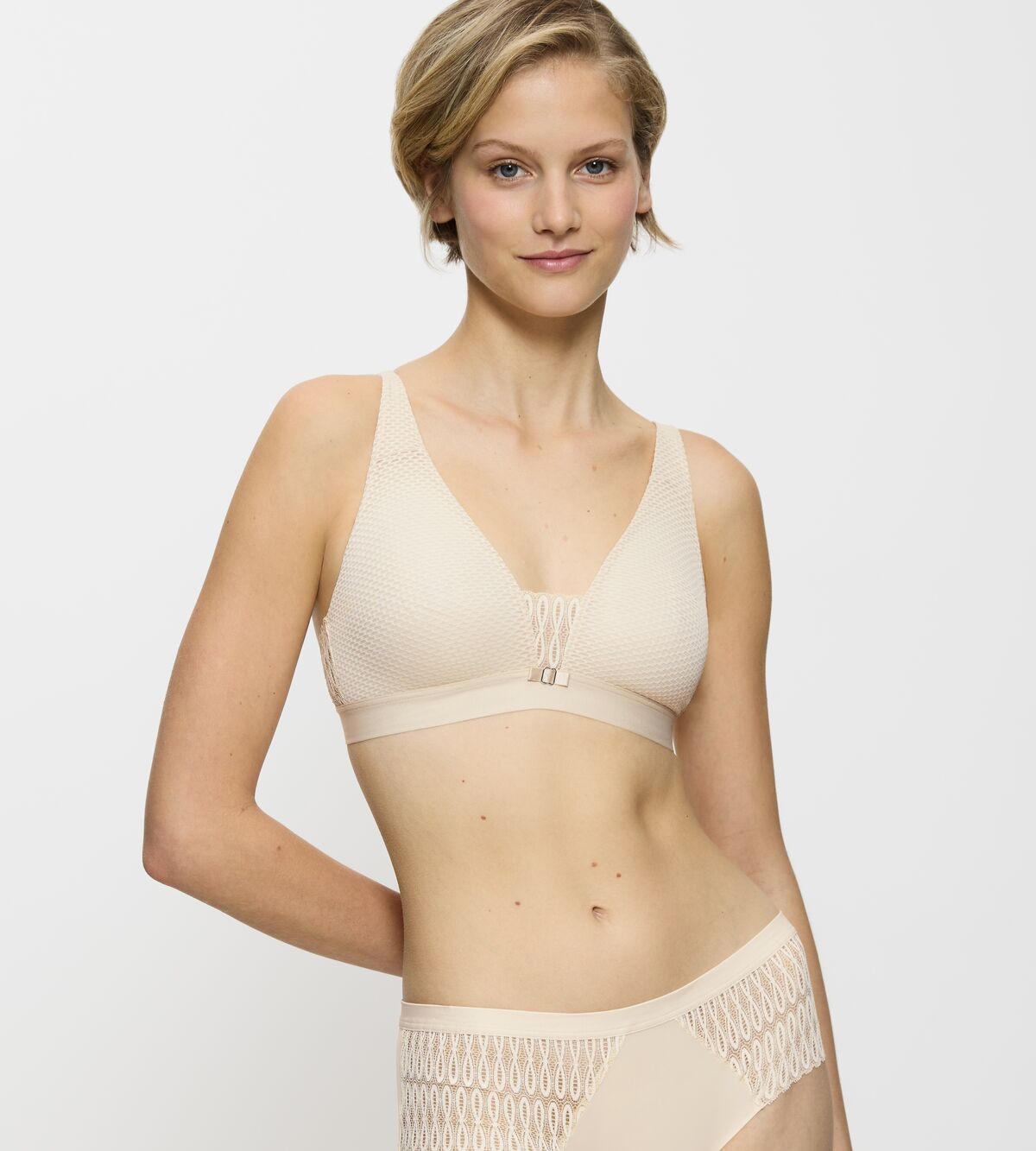Uus rinnahoidja, mis on loodud toestama nagu tugikaartega rinnahoidja, kuid mida on kanda sama mugav nagu tugikaarteta rinnahoidjat. Riiete all nähtamatud koemustriga materjalist korvid, millel on funktsionaalne vooder tagamaks toestuse ka suurematele täidlustele. Dekolteed kaunistab naiselik pitsdetail. Elastne pits ja laiem korvi alaosa loovad moodsa ja naiseliku rinnahoidja.