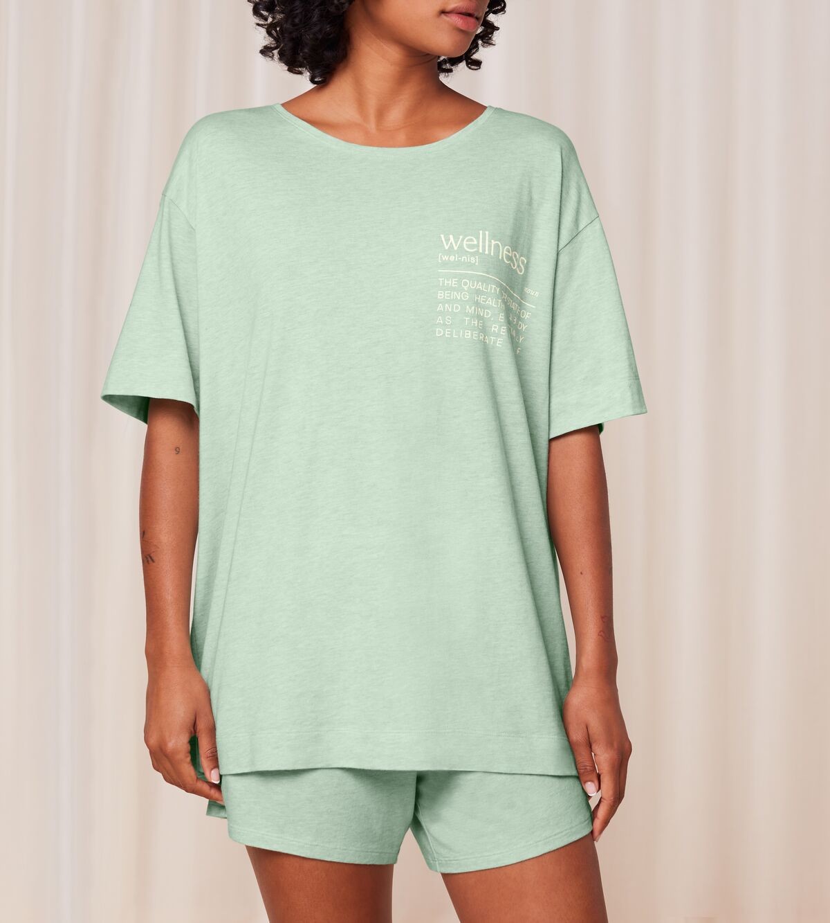 Väga pehmest ja mõnusast materjalist pidžaama koosneb lühikestest pükstest ja lühikeste varrukatega ülaosast.