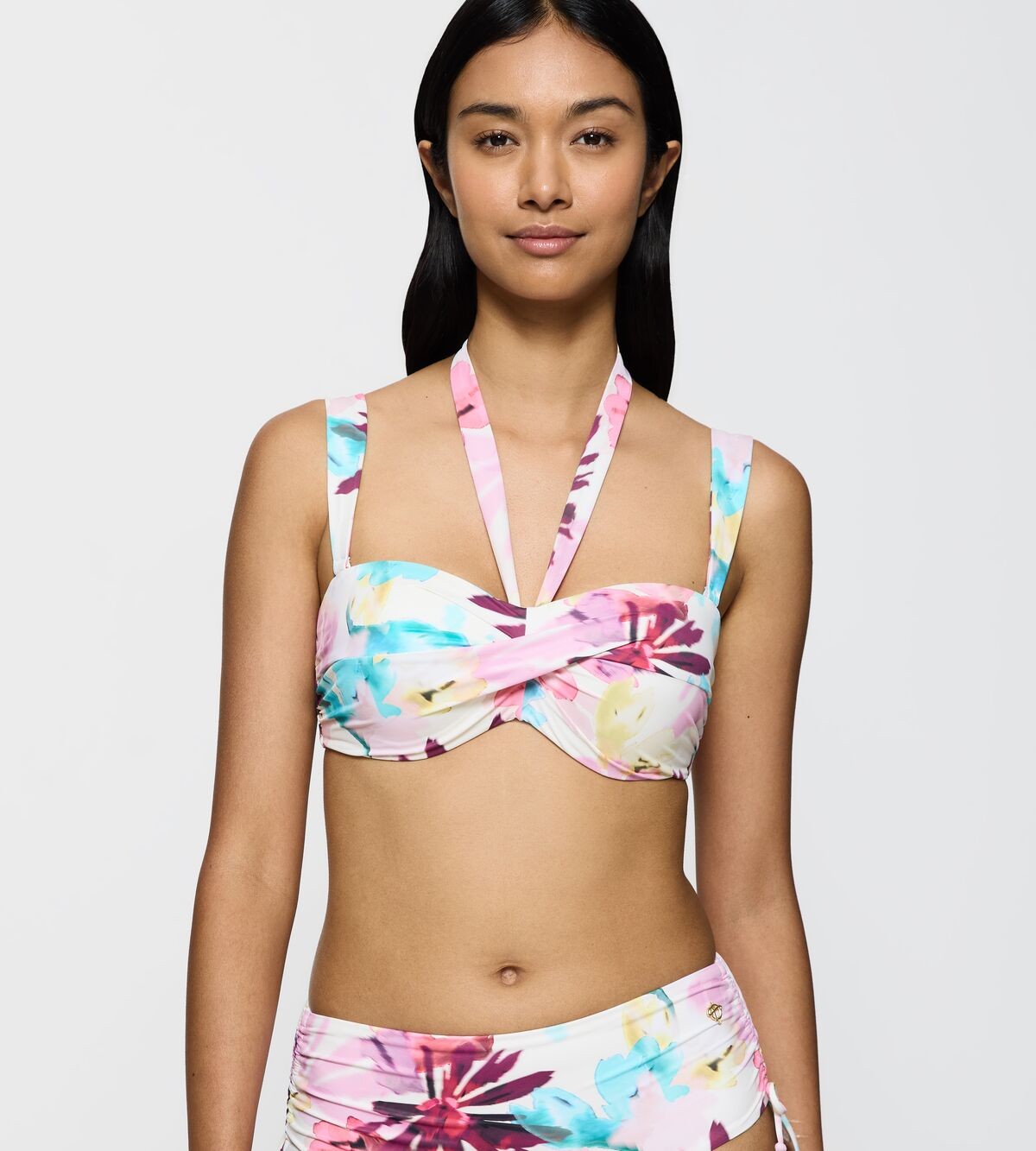Pehmest ja vastupidavast materjalist bikiinirinnahoidja. Kerged polstrid kuivavad kiiresti. Reguleeritava pikkusega ja eemaldatavad õlapaelad. Silikoonriba ja küljetugevdus parema toestuse tagamiseks.