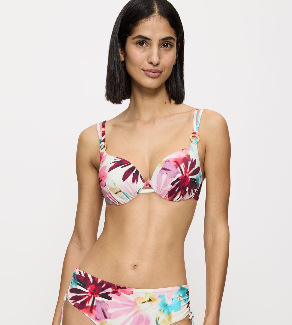Tugikaartega, polstriga päevitusrinnahoidja. Õlapaelad on reguleeritava pikkusega.