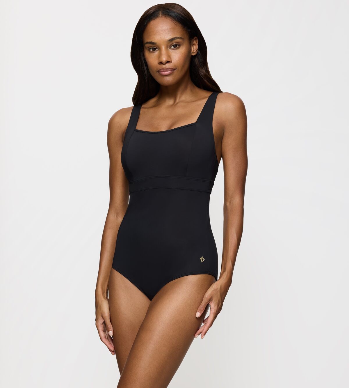 Pehmest ja vastupidavast materjalist ujumistrikoo. Tugikaartega, ilma polsterduseta, rinna all elastne pael täiusliku toestuse ja mugavuse kindlustamiseks. Seljaosal kinnis. Laiad reguleeritava pikkusega õlapaelad.