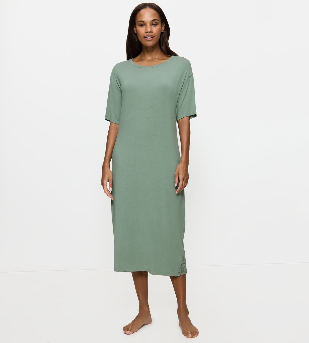 Ülipehmest ja mugavast viskoostrikotaažist lühikeste varrukatega öösärk. Mugav põlvedeni pikkus. Kaunid pitsdetailid küljeõmblustes lisavad elegantsust. Materjal on väga nahasõbralik ja ei vaja triikimist.